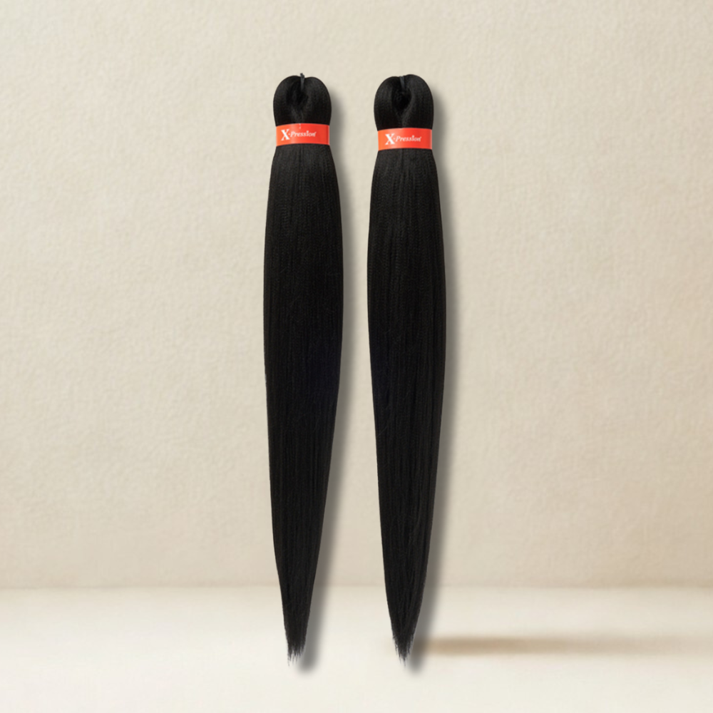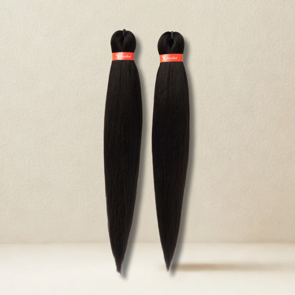Made from soft, lightweight, and tangle-free fibres, X-Pression Pre-Stretched hair is perfect for box braids, knotless braids, feed-ins, cornrows, and a variety of protective styles. The flame-retardant fibres ensure safe, long-lasting wear, while the pre-stretched design helps achieve neat, clean braids from root to tip.